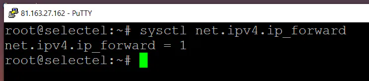 Чтобы включить форвардинг трафика выполните следующую команду.